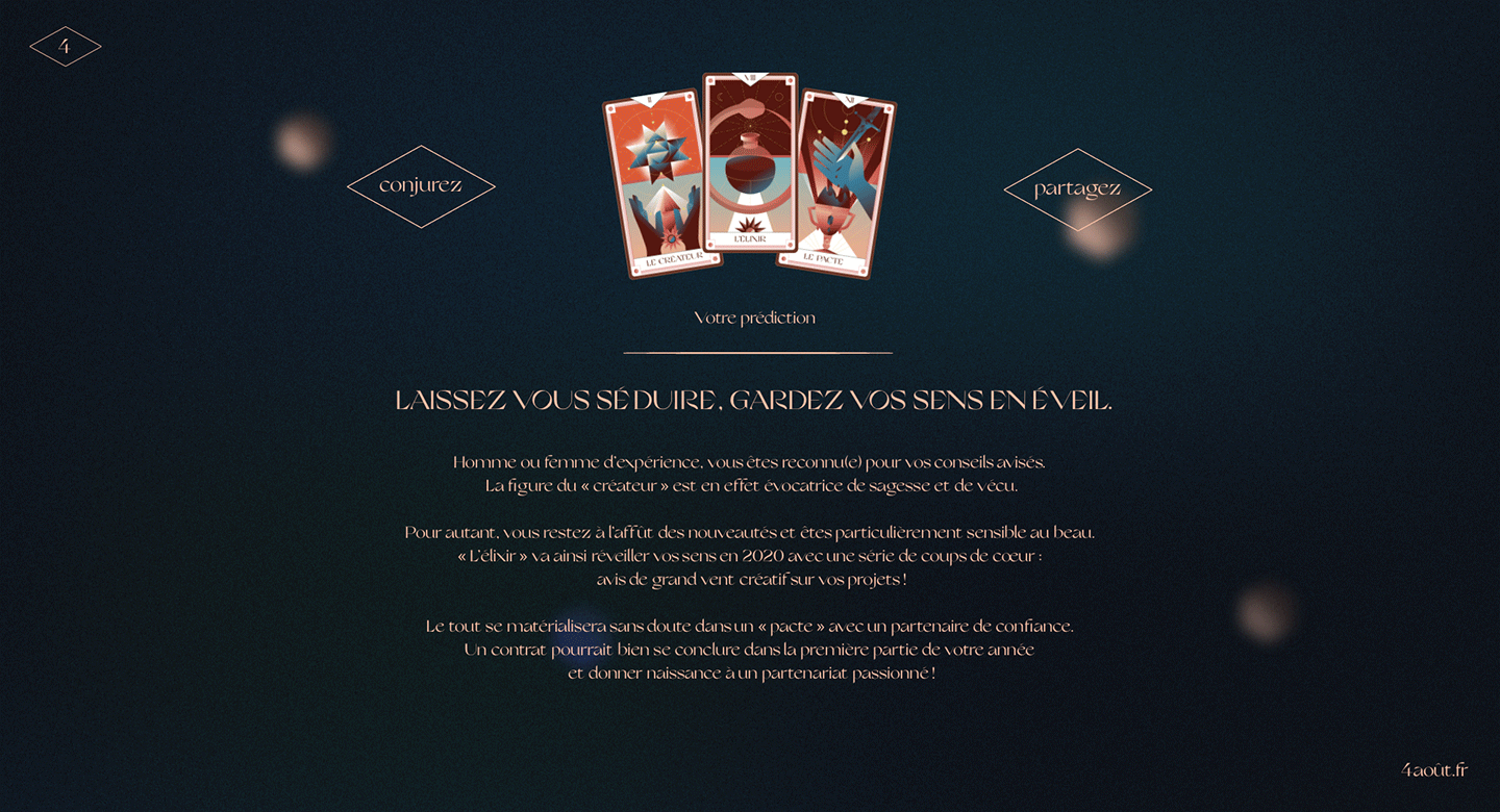 Opportunités professionnelles, aboutissement d’un projet, nouveau départ ? À l’aube d’une nouvelle année, 4août vous tire les cartes et révèle votre prédiction personnalisée sur http://4omancie.fr/.